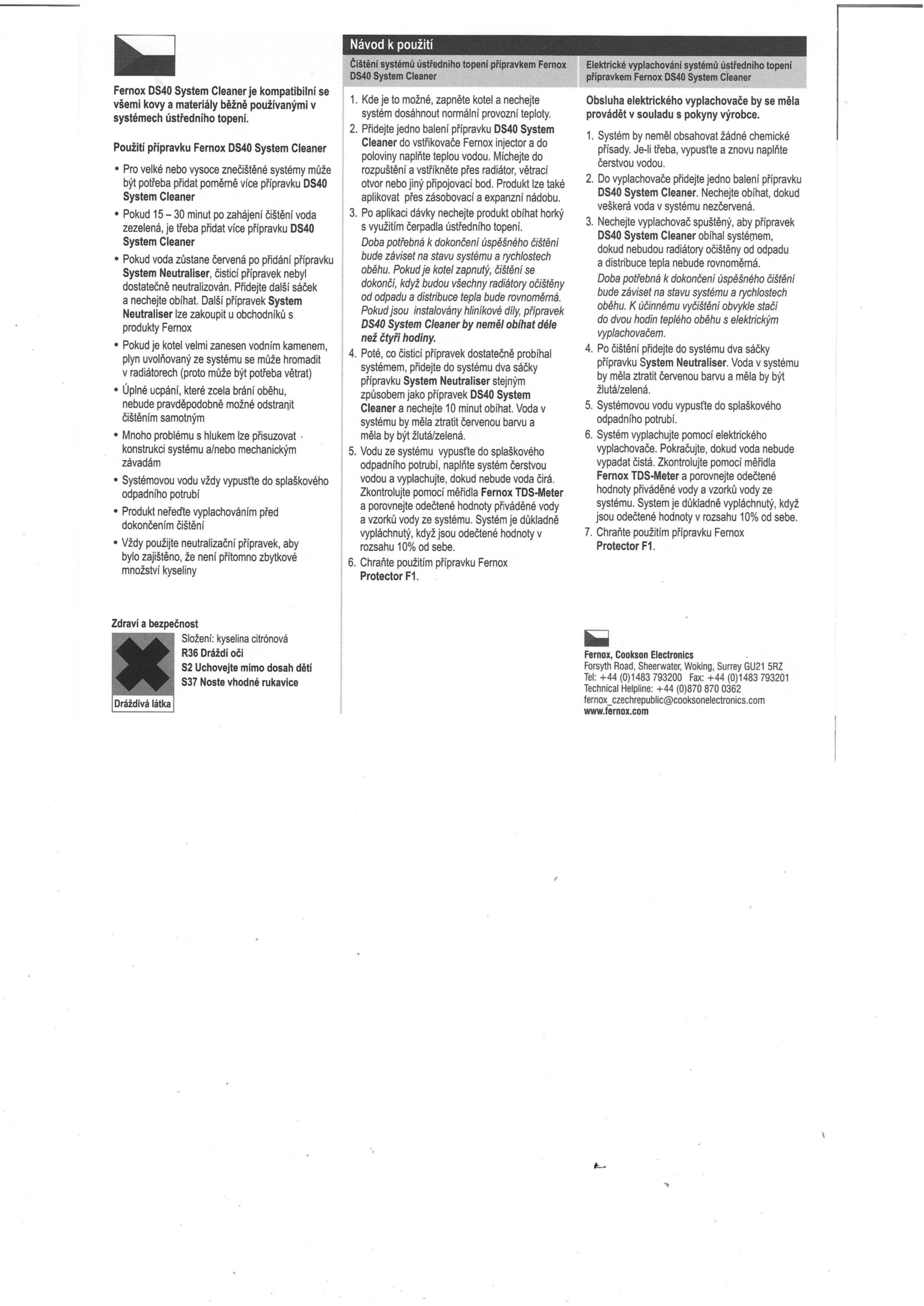 PŘÍPRAVEK FERNOX DS40 SYSTEM CLEANER