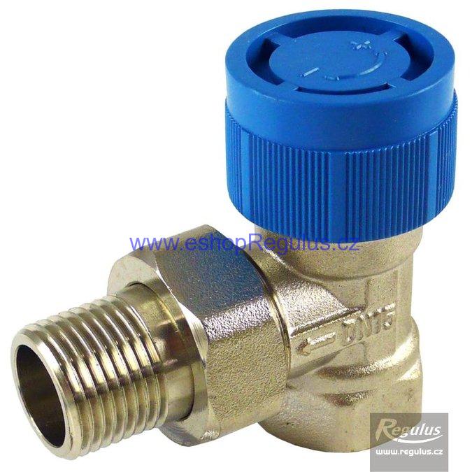 Radiátorový ventil rohový s vnitřním závitem, pro termostatickou hlavici, na vstup do radiátoru.